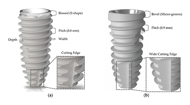 The first is the endosteal implant. These are inserted directly into the jawbone and hold one or more artificial teeth in place via abutments. They look like small screws, either tapered or cylindrical.